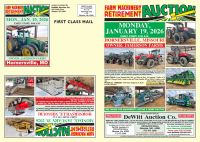 This sale features several local farmers making operational changes and selling surplus equipment. : This is a small listing of items that will be in this sale. This sale usually runs from 8:30 in the morning till 6:00 in the evening. For full listing, late additions, pictures and more information, visit our website. ALSO: We want to say a personal “Thank You!” to all of you who, for decades, have traveled here to support this sale. The local businesses as well as the private school who handles the concessions appreciate you very much. We look forward to seeing you on Thursday, Jan. 29th! IMPORTANT NOTICE: THIS AUCTION WILL BE ONSITE BIDDING ONLY. THERE WILL BE NO ONLINE BIDDING. If you cannot attend and want to bid on a piece of equipment, contact DeWitt Auction Co. before sale day and we will make arrangements for someone in attendance to call you and bid for you. |
