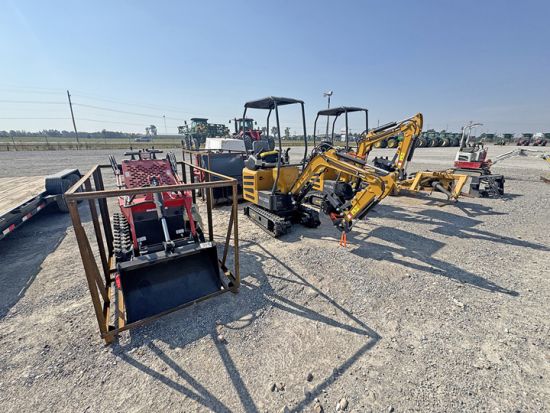 APPROX. 12:00 NOON - Construction Equipment including backhoes, track loaders, forklifts, rubber tire loaders and dirt scoops.